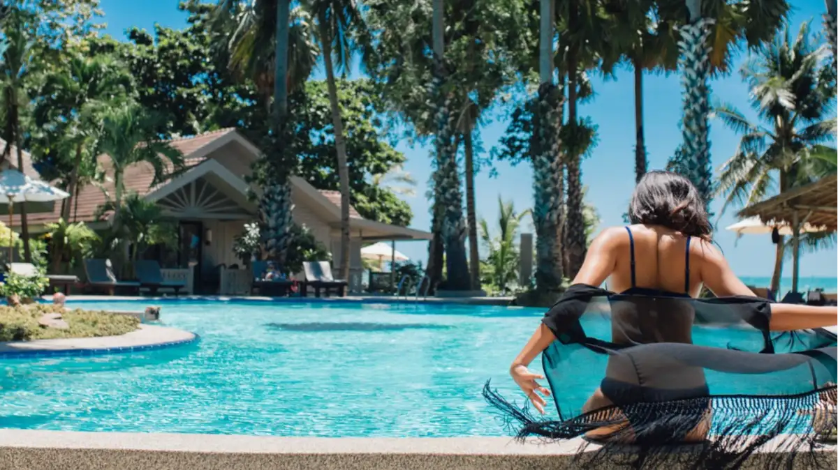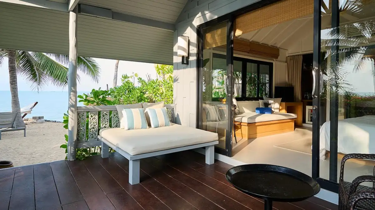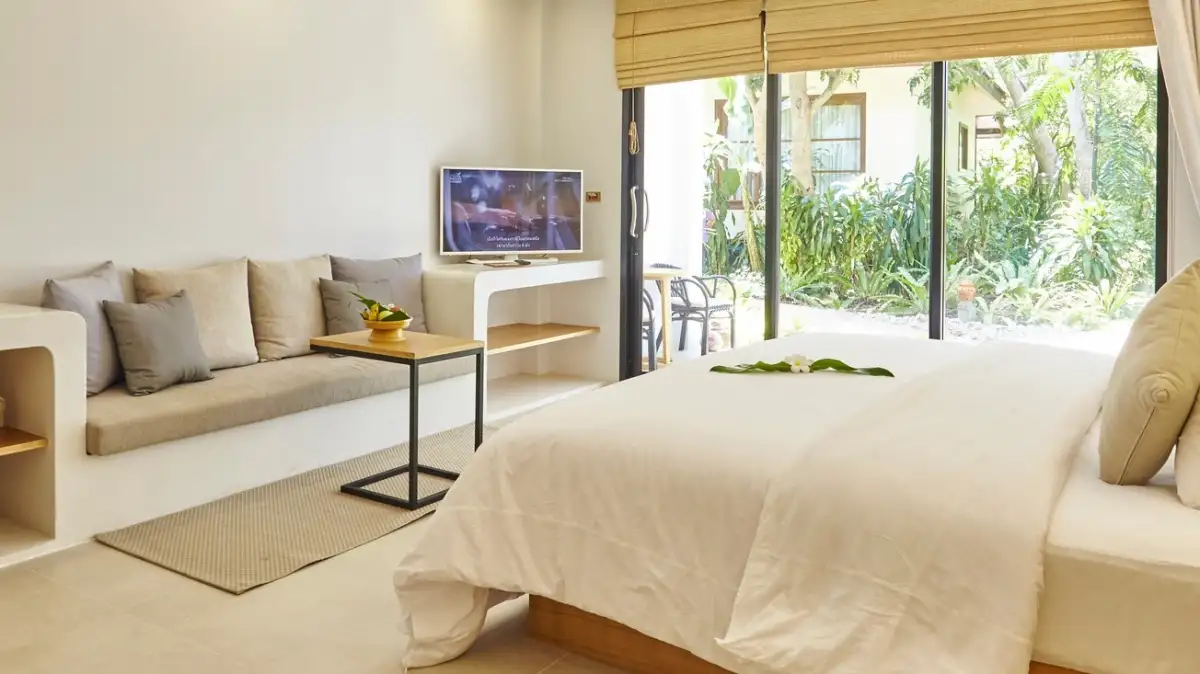Guests enjoy a large outdoor swimming pool, a beachfront restaurant, spa services, and complimentary shuttle to Fisherman’s Village. Rooms feature private balconies and are surrounded by tropical gardens—ideal for couples, families, and long-stay visitors.